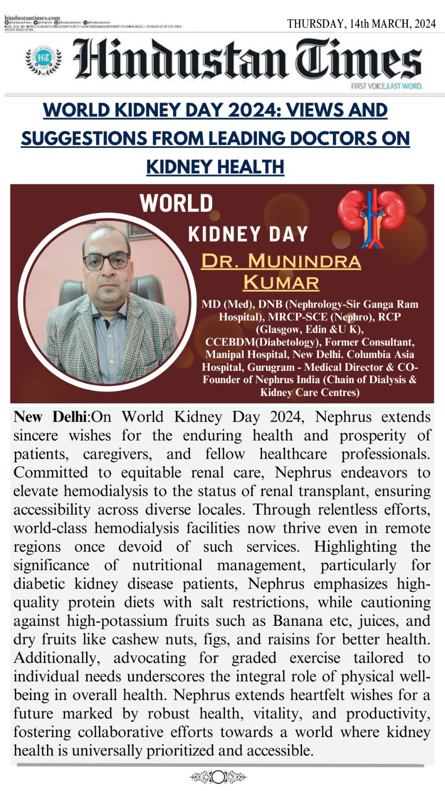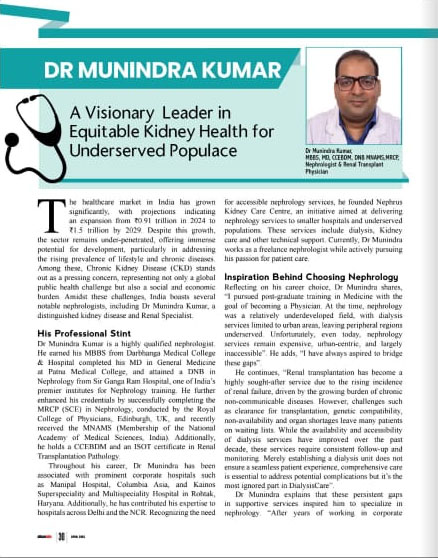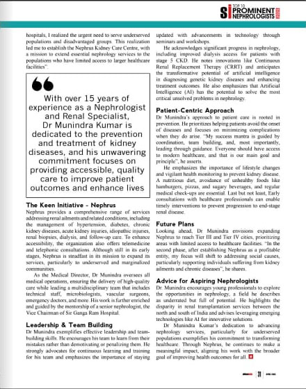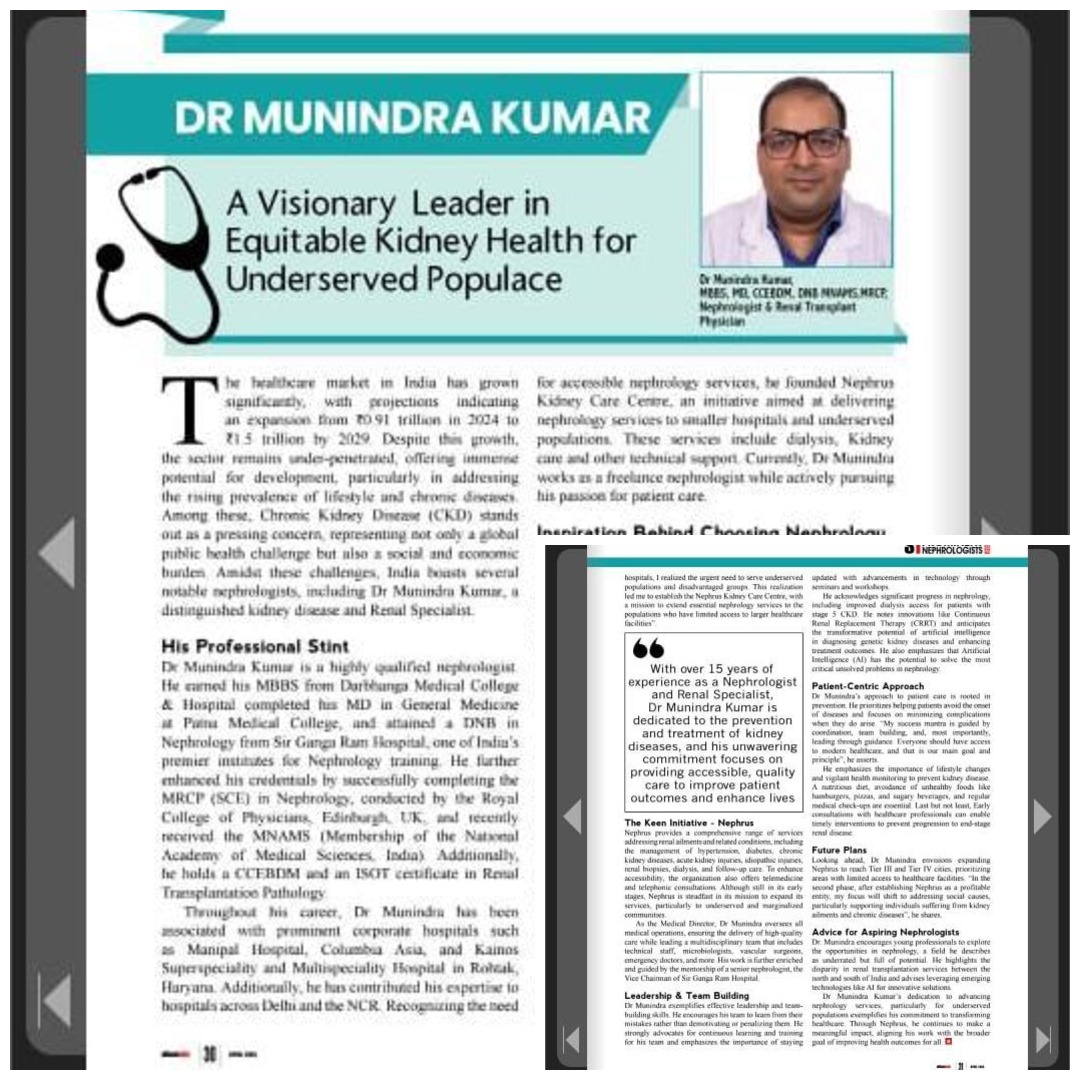 Welcome to Nephrusindia, where we are committed to providing comprehensive and specialized care for Kidney, Diabeties and other related conditions. Led by renowned Nephrologist and Diabetologist, Dr. Munindra Kumar, our multidisciplinary team of expert doctors, Vascular Surgeon and under the mentorship of renowned stalwart leader from Sir Ganga Ram Hospital, New Delhi, brings together vast experience.